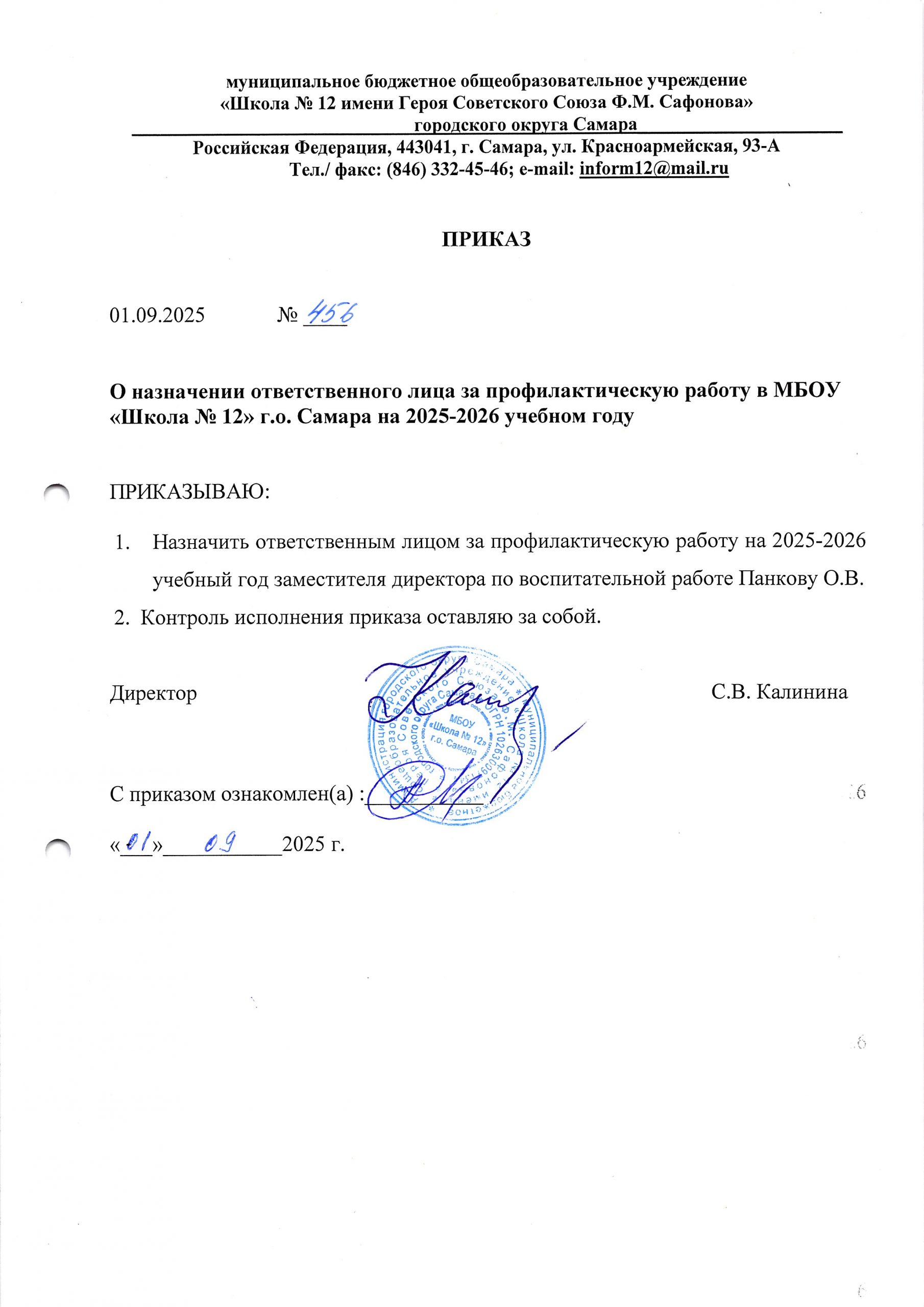 Приказ об организации работы совета профилактики от 01.09.2025